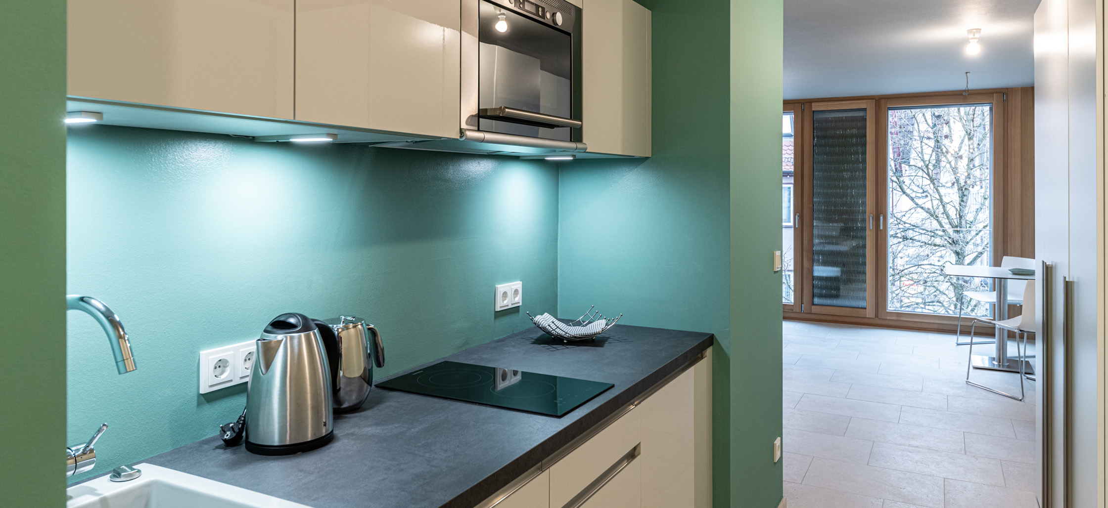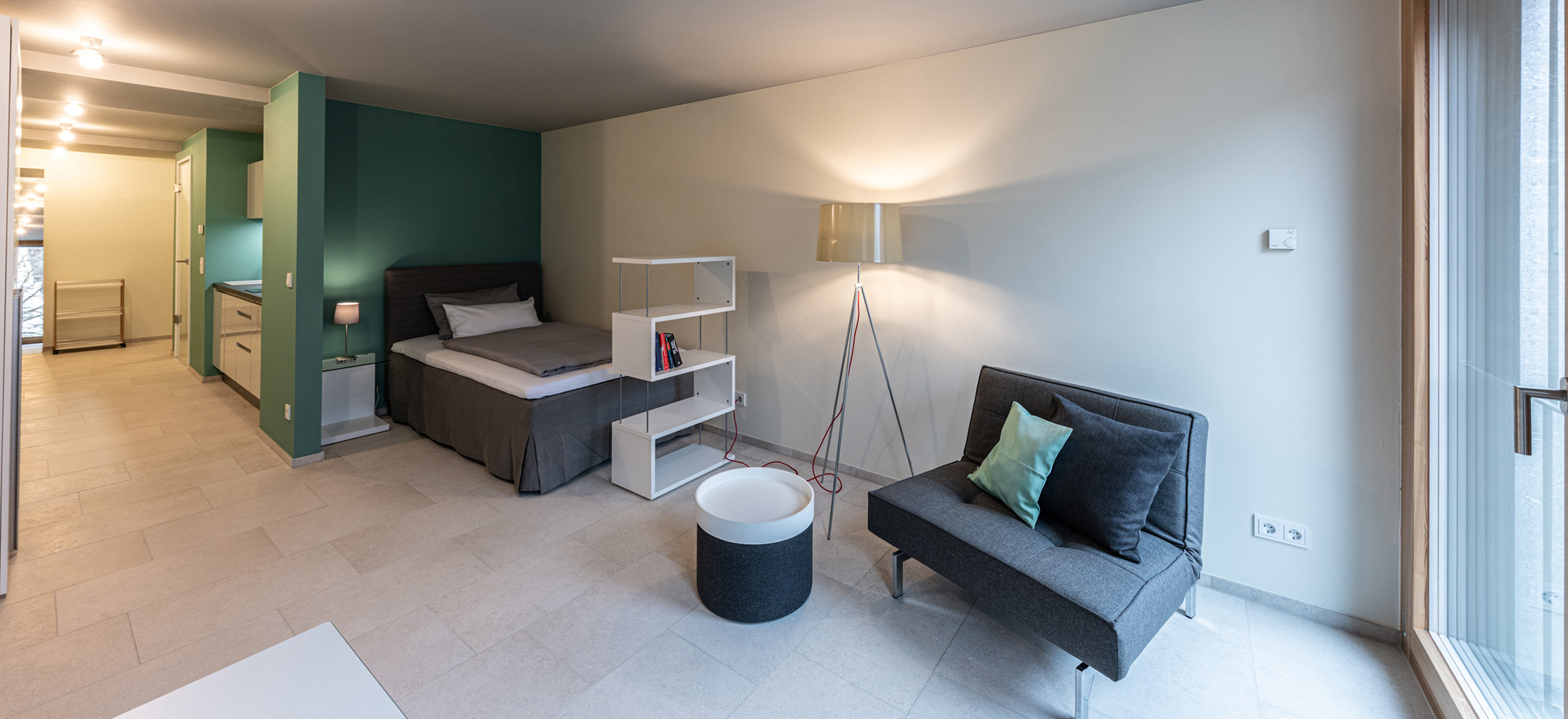 Willkommen in Ihrem salbeifarbenen Apartment W09, das perfekt auf die Bedürfnisse eines Einzelreisenden zugeschnitten ist und auch für längere Aufenthalte ausreichend Raum bietet. Unser Apartment glänzt mit einer durchdachten Kombination aus Komfort, Funktionalität und modernem Design.
